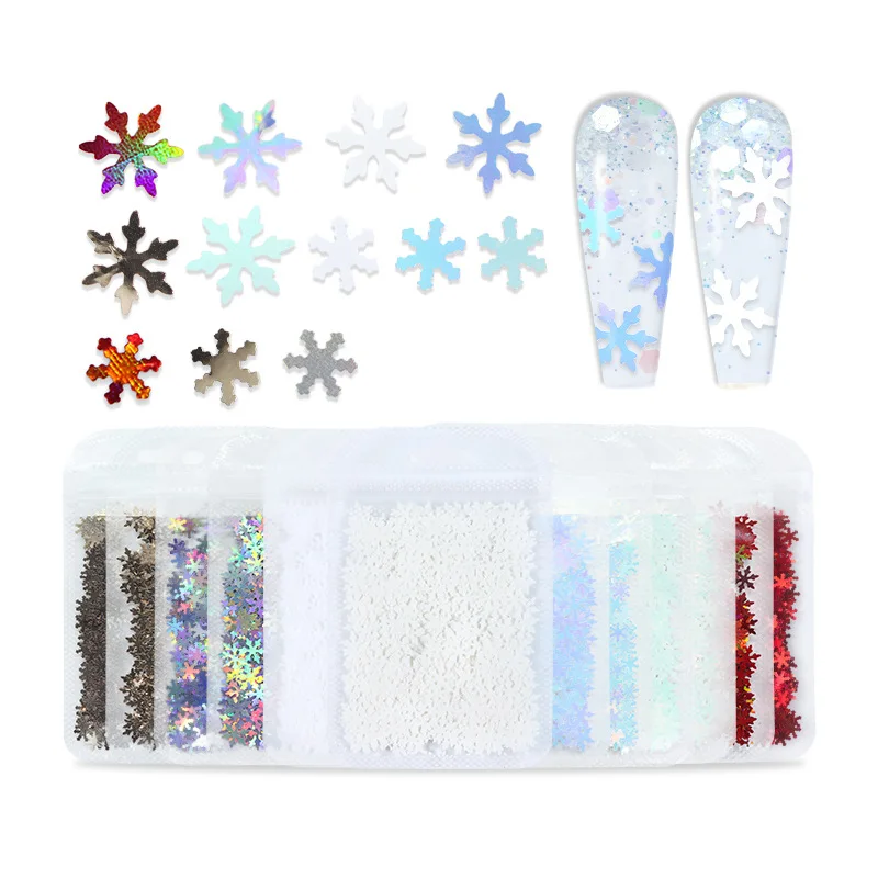 2g блестящие снежинки для ногтей, блестящие голографические блестки, лазерные украшения для ногтей, аксессуары, Зимний Рождественский дизайн, хлопья Размер блесток: 9 мм/6 мм