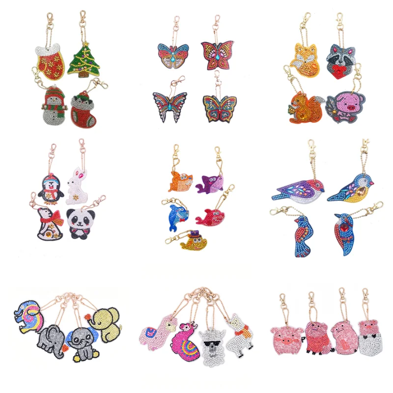 4 шт.компл. DIY брелок для алмазной живописи с мультяшным рисунком, подвеска с полным заполнением, животные, бабочки, птицы, алмазная вышивка, брелок, рождественский подарок