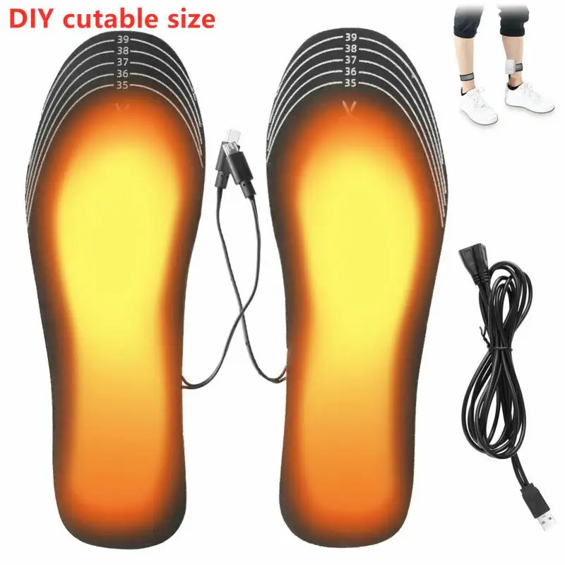 Стельки с подогревом по USB, теплые стельки для обуви, коврик для носков, стельки с электроподогревом, моющиеся теплые термостельки унисекс, размер сделай сам