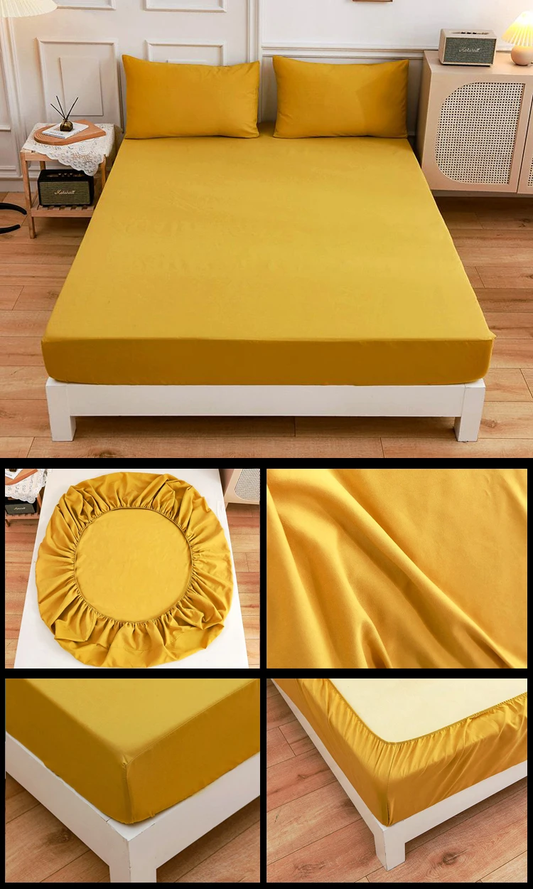Однотонная Простыня из полиэстера, натяжная простыня, наматрасник с четырьмя углами и эластичной лентой, простыня для спальни (необходимо заказать наволочки)