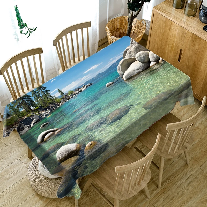 Скатерть синяя моющаяся для журнального столика, 3D пляжное украшение для гостиной, прямоугольная ткань для стола, лето