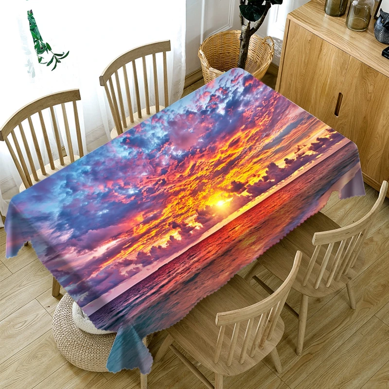 Скатерть с 3d-рисунком Морского Пейзажа, закат на море, моющаяся тк...