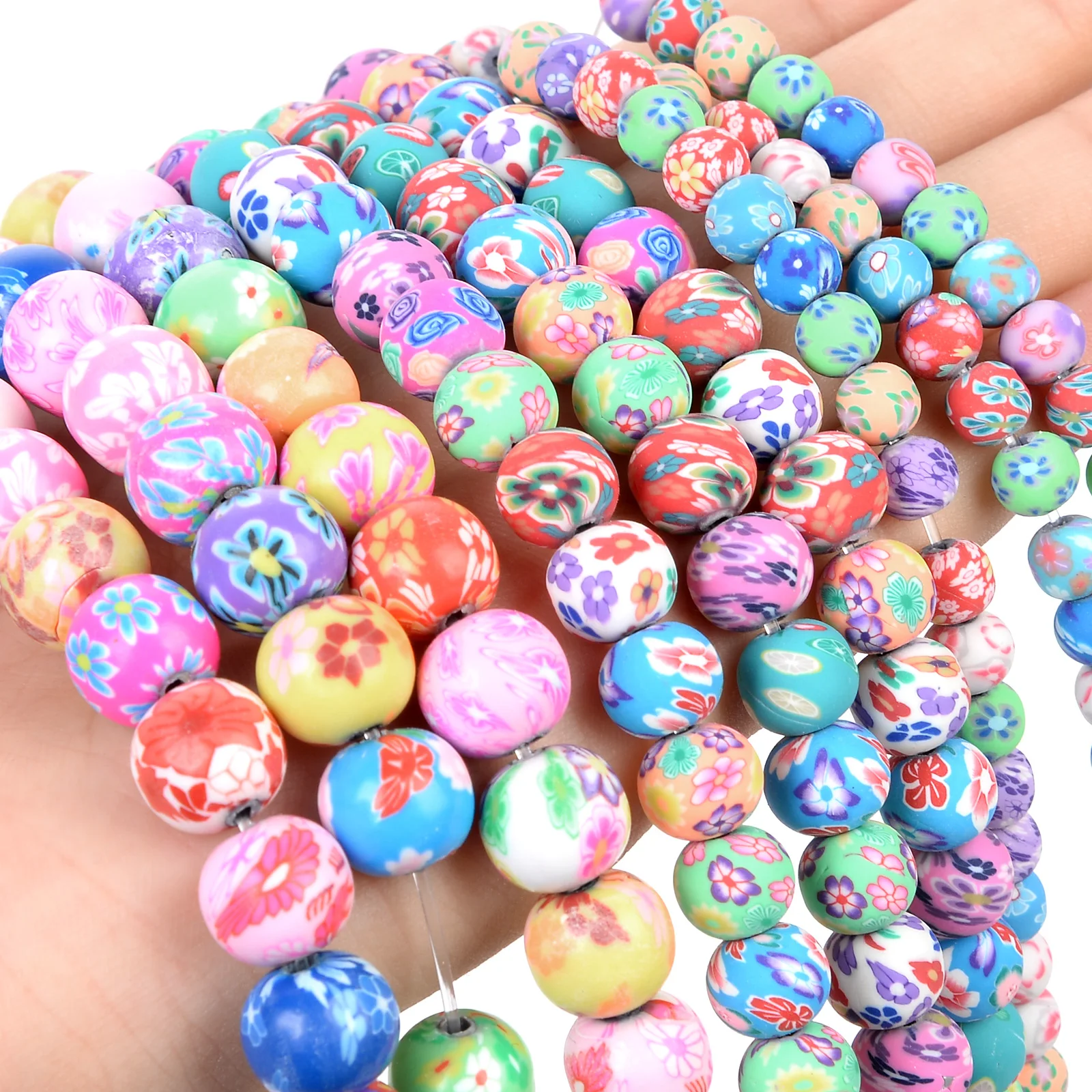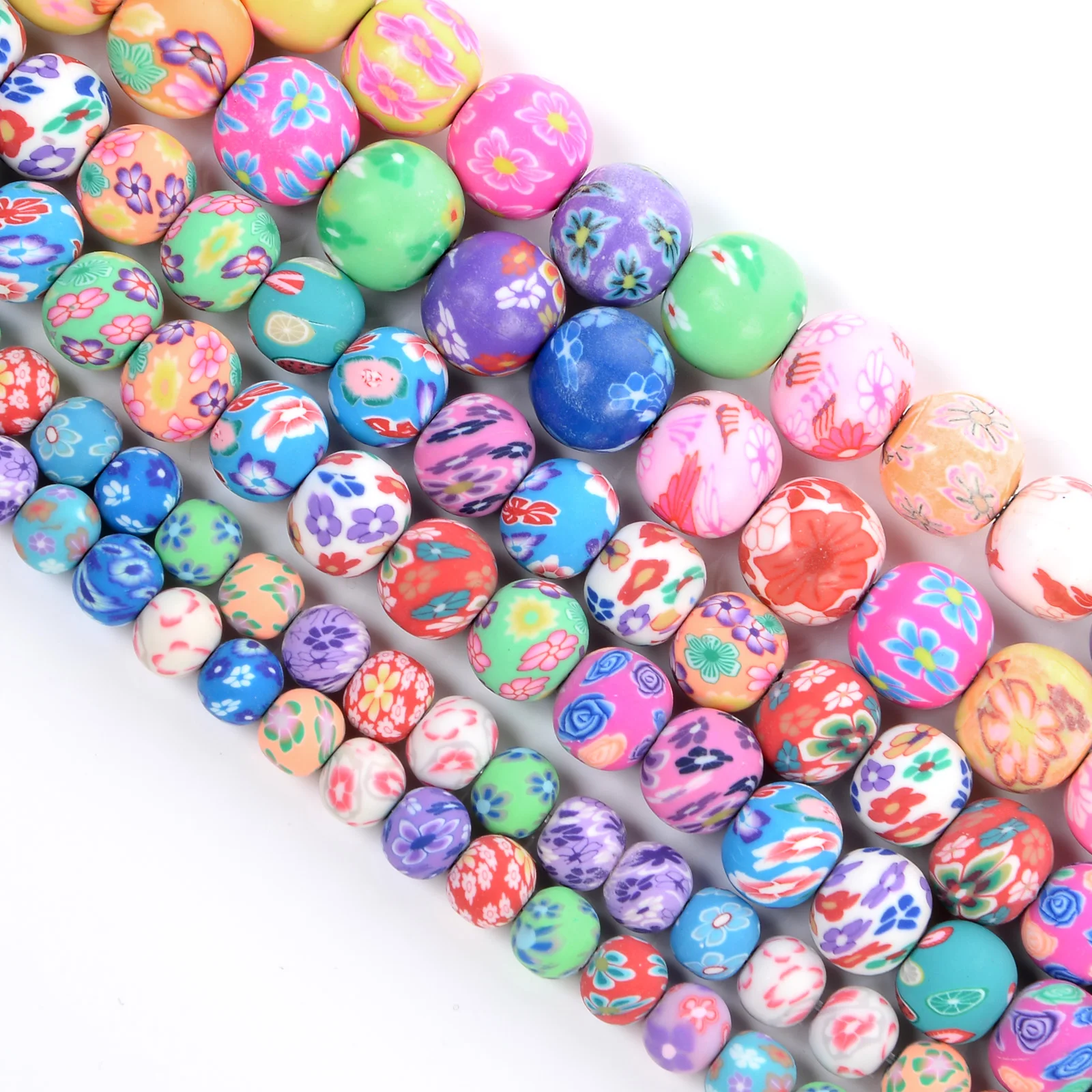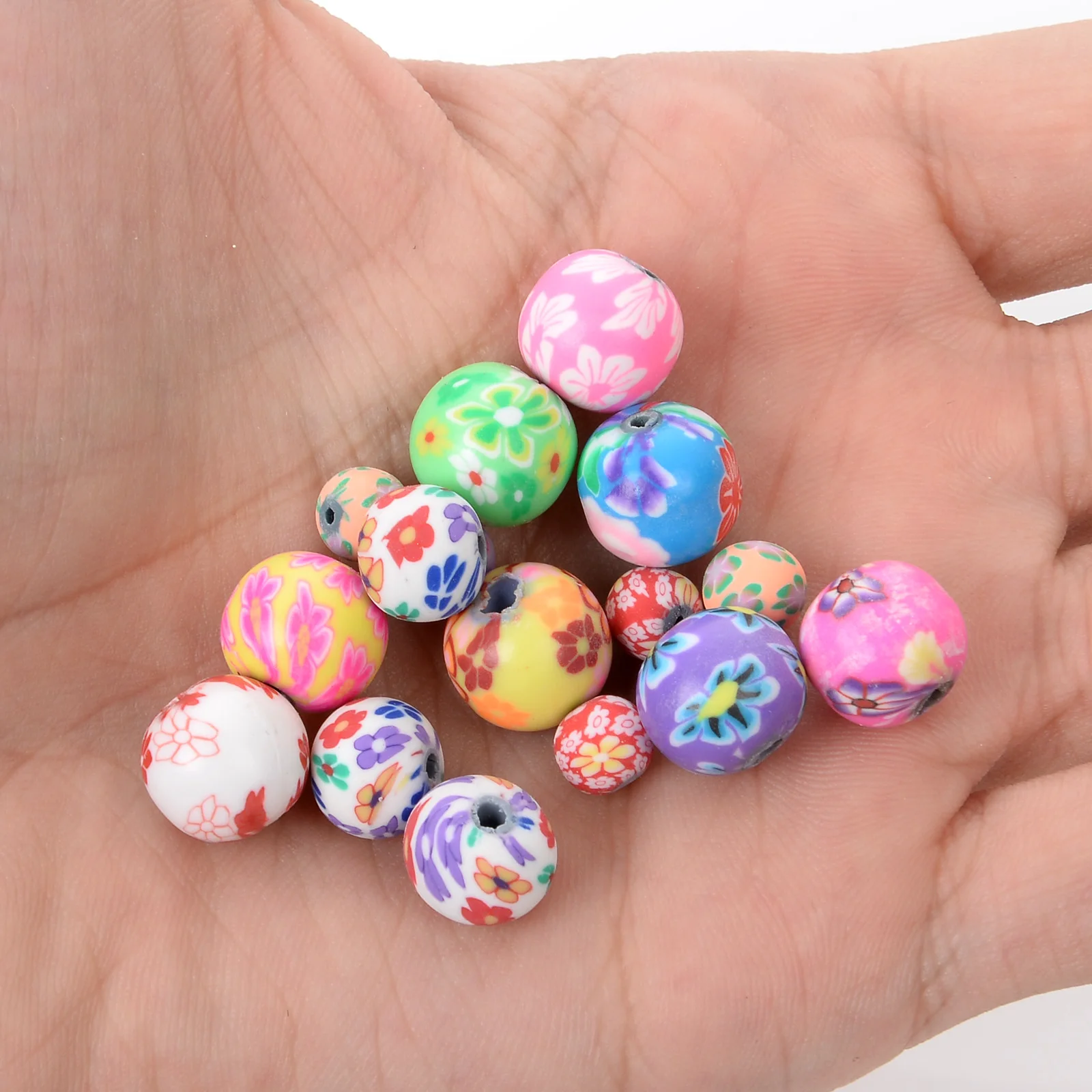 Цветочный узор, печатная глина, бриллиантовые круглые свободные полимерные космические бусины для изготовления ювелирных изделий, DIY, браслет, ожерелье 6810 мм
