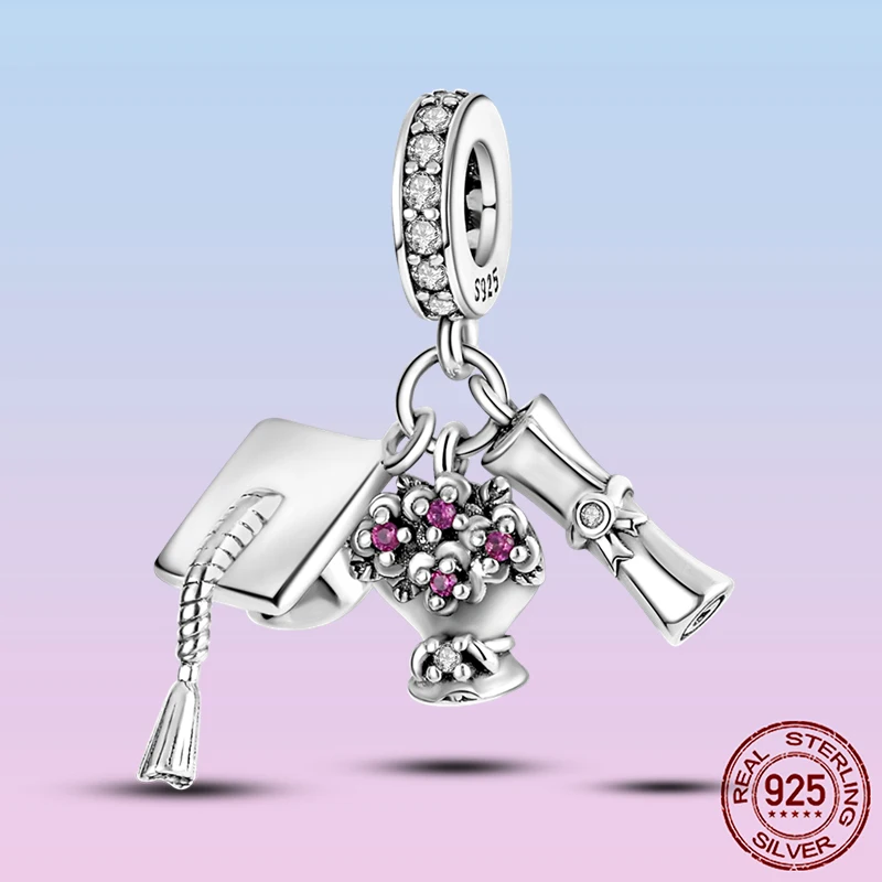 Шарм-подвеска из серебра 925 пробы с изображением цветов на выпускной