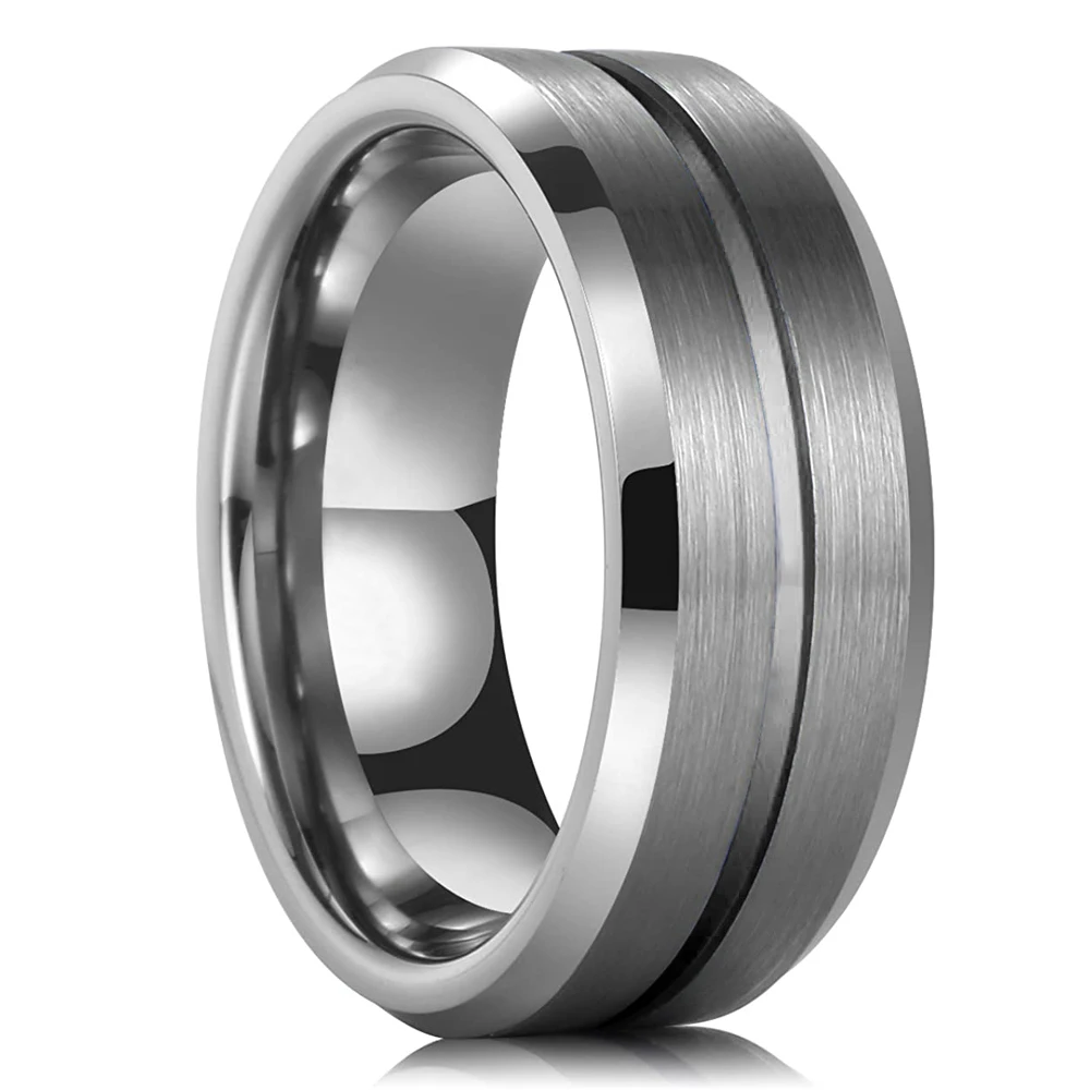 2021 модное мужское кольцо 8 мм серебристого цвета вольфрамовое обручальное кольцо двойной серебристый цвет скошенный край кольцо из нержавеющей стали для мужчин