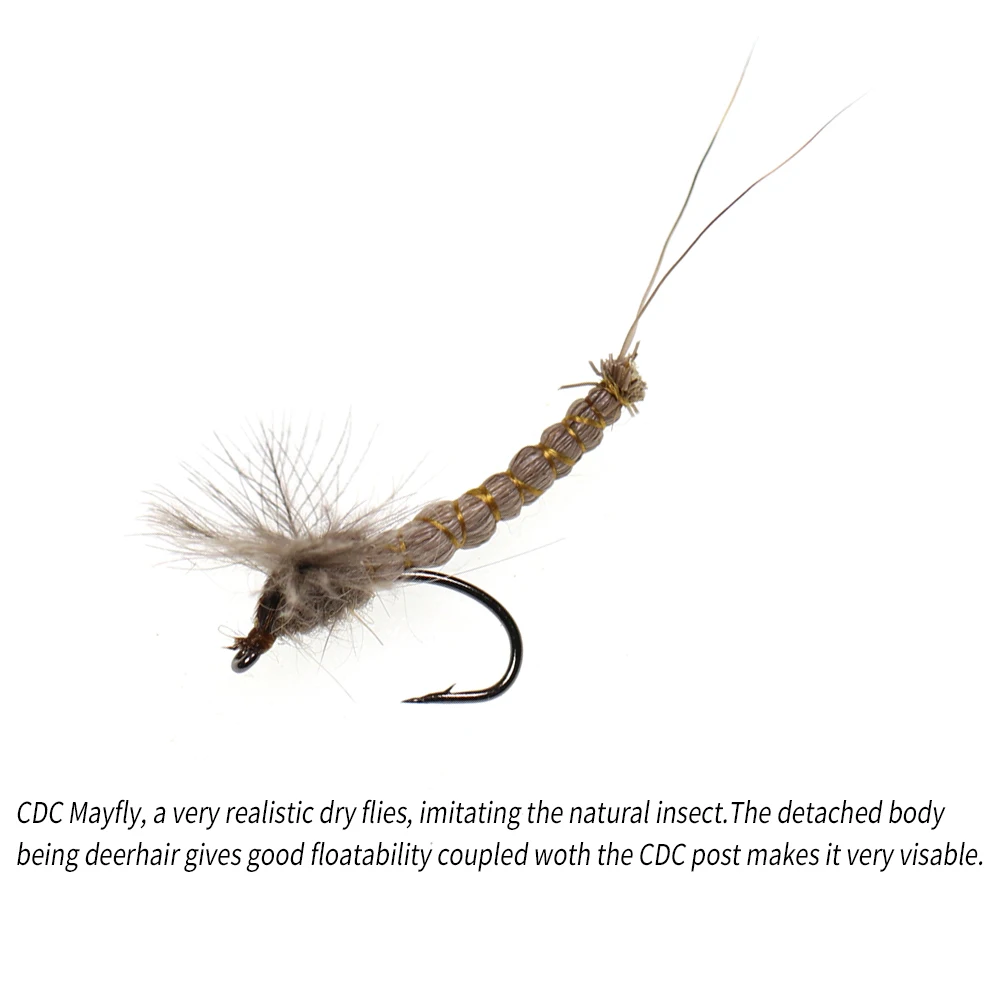 CDC Mayfly, очень реалистичная сухая муха, имитирующая естественное насекомое. Отделяемое тело, придающее волосам хорошую плавность в сочетании с woth пост CDC делает его очень вязким. Крючок изготовлен из высокоуглеродистой стали и очень острым наконечником с дизайном Барба, он может быстро прокалывать рыбу и надежно удерживать ее.