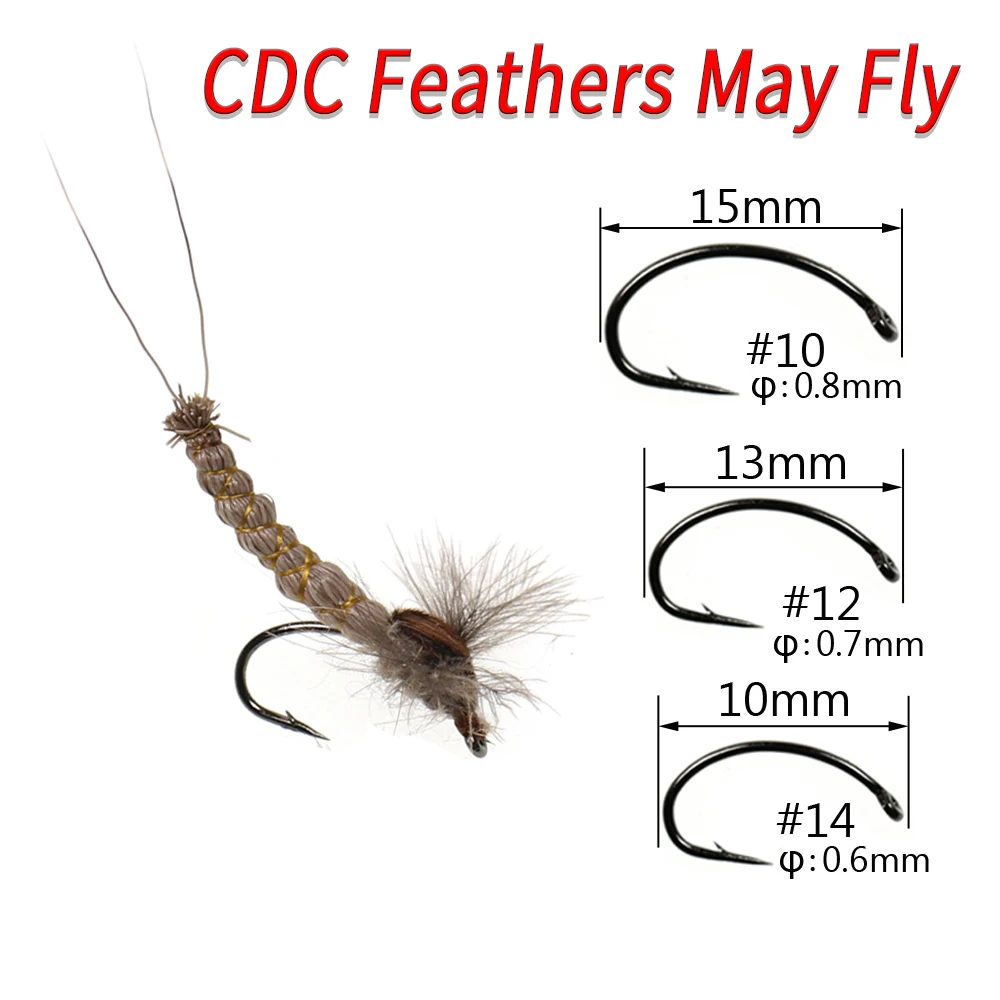 Верх 6 шт. Deerhair плавающие сухие мушки CDC перья Mayfly связывание с зазубренным крючком для ловли форели приманки #10 #12 #14