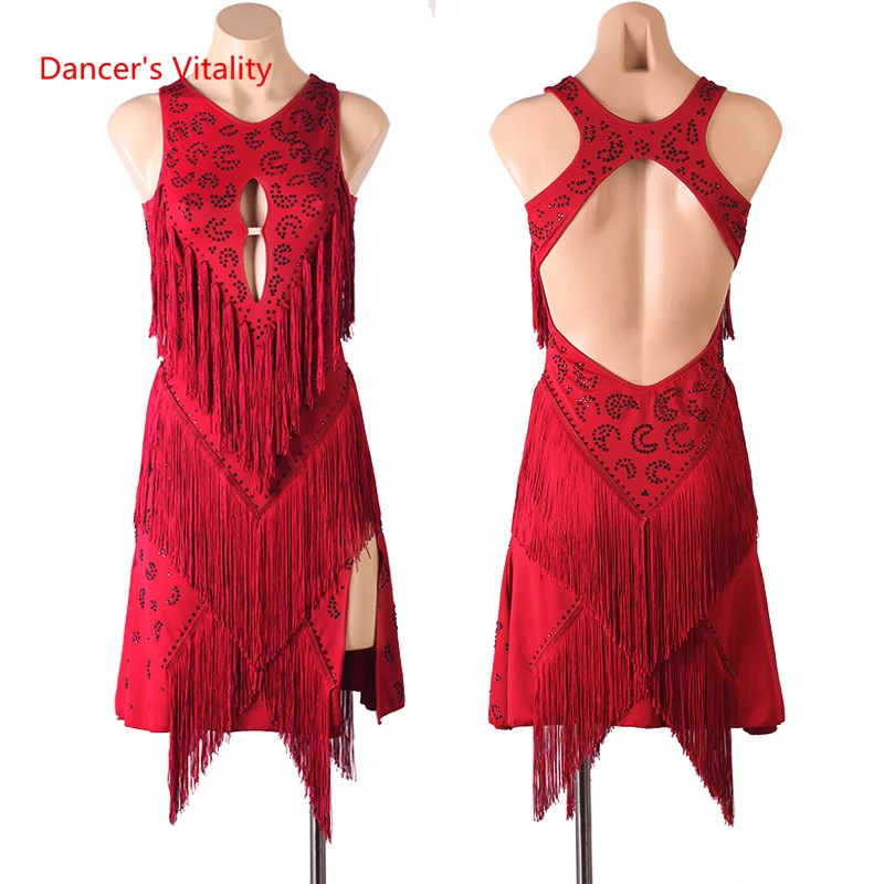 Платье для латиноамериканских танцев, женское платье из спандекса, костюмы для латиноамериканских танцев на заказ для взрослых, детей и девочек, юбка с бахромой