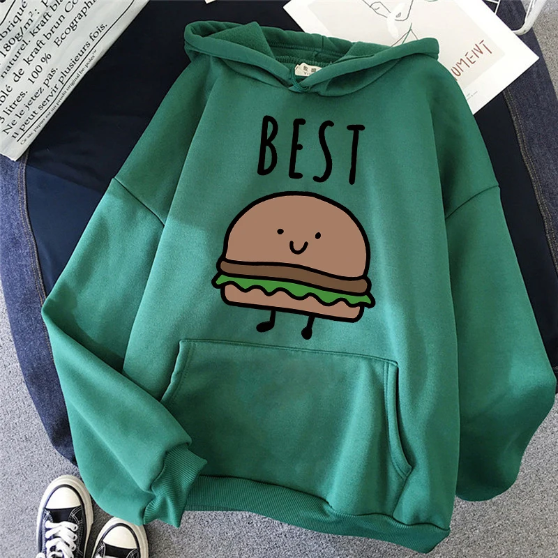 Модные женские толстовки с принтом гамбургера, лучший друг, зимние теплые женские уличные свитшоты с графическим принтом в стиле Харадзюку, Дамские пуловеры