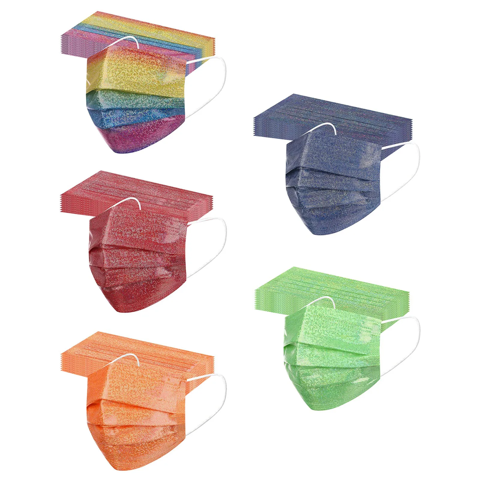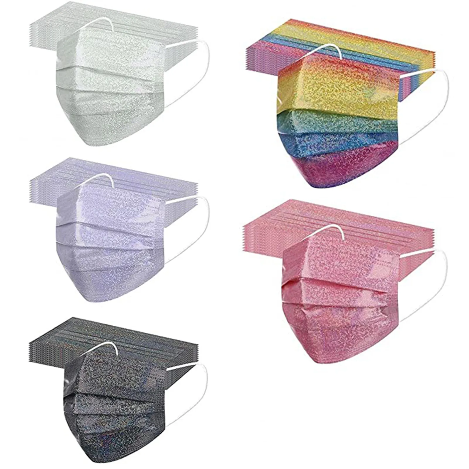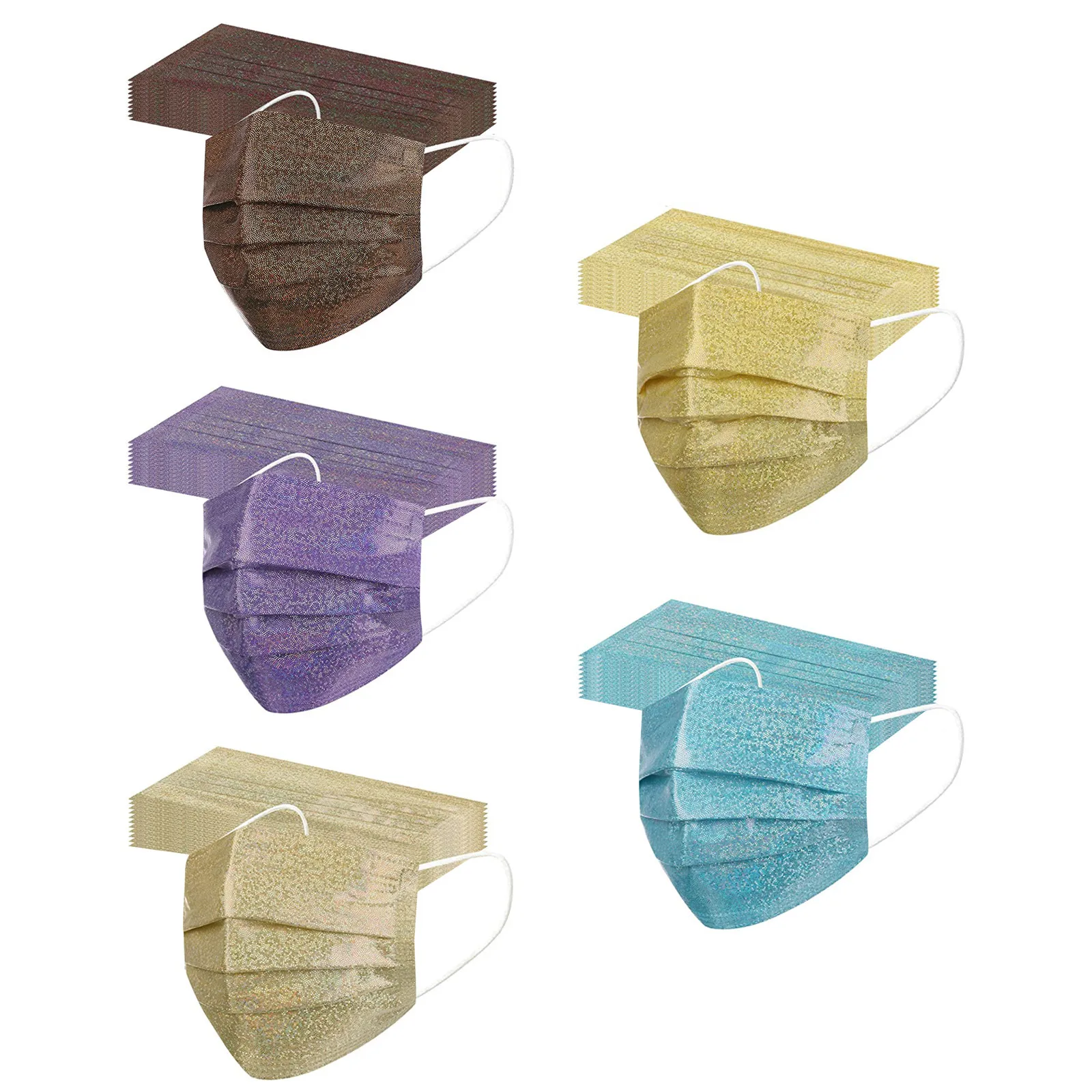 Одноразовые маски для лица с блестками для взрослых, многофункциональные дышащие тканевые 3-слойные маски с блестками для защиты рта и носа, 50 шт.