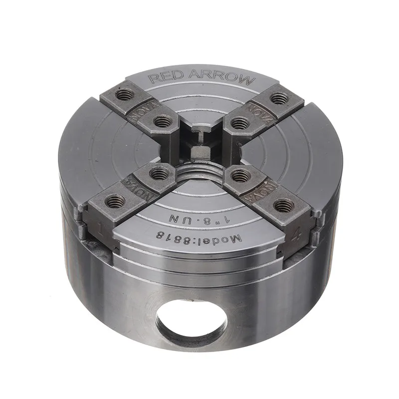 Четыре челюсти надежно захватывают круглое и квадратное дерево. Специальный профиль ласточкин хвост на челюсти. Безопасный замок червячный винт включен для быстрого крепления грубого тимберленда. Функция автоматической остановки безопасности-кулачковые слайды не могут протекать мимо корпуса патрона. Направляющие челюсти изготовлены из высокотехнологичной меди плавленой стали для максимальной твердости, износа и самосмазывающихся свойств. До 400 мм/16 "Диаметр качели.
