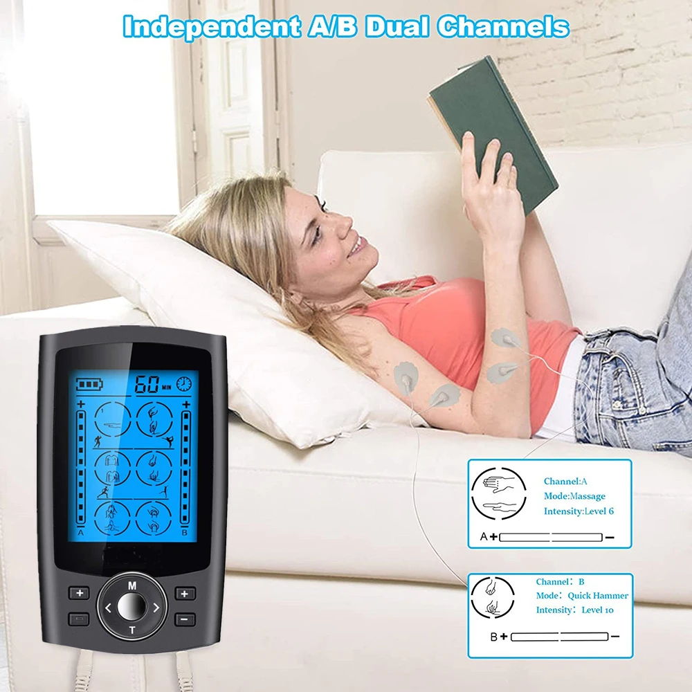 1. Встроенный 24 различных предварительно запрограммированных режима стимуляции для многоцелевого массажа, чтобы эффективно облегчить боль и усталость, способствует циркуляции крови и метаболизму или стимулирует мышцы для повышения производительности мышц различных частей тела, таких как голова, плечи, талия, спина, ягодицы, ноги и т. Д.2. Большой ЖК-дисплей с белой подсветкой обеспечивает четкую и прямую индикацию состояния работы аккумулятора, режима, интенсивности и времени как днем, так и ночью, даже в тусклой среде.3. Простой дизайн управления кнопками, вы можете легко переключать режимы, устанавливать время и регулировать интенсивность на панели управления и включение/выключение питания, сдвинув верхнюю кнопку в соответствии с вашими предпочтениями эксплуатации.4. Поддержка двойных независимых выходов (A, B канал), чтобы позволить кастомизации приложений на различных областях тела с различной интенсивностью массажа одновременно, практично поделиться с друзьями или семьей вместе.5. Хорошо организованный и хранимый в коробке для посылка, идеальный подарок, чтобы показать заботу о ваших близких, таких как ваша семья или друзья, действительно практичное персональное устройство для фитнеса в занятой современной жизни, легко положить в сумку или рюкзак, экономя пространство при переноске.