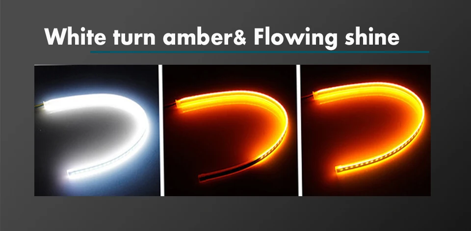 Все в одном дизайне (светодиодный драйвер внутри трубки больше не нужен балласт)Тип: светодиодный светильник дневного света для автомобиляМатериал: силиконВходное напряжение: 12 ВПодходит: Универсальный для всех автомобилейСветильник Тип: течет поворотаРабочая температура: -40 ~ 50Светильник Толщина: 0,3 см (около 0,12 дюймов)Светильник Размеры: 30 см/45 см/60 см (около 11,81 дюймов/17,72 дюймов/23,62 дюймов)3 цвета на выбор1. Белый переливающийся поворот на желтый2. Кристально-синий цвет переходит в желтый цвет3. Красный переливающийся поворот на желтыйАнгельские глазки, головной светильник поворотный светильник.Красный провод для белый светильник, желтый провод для желтый светильник, черный провод для отрицательного провода.(При вождении светильник белый, при повороте он постоянно течет желтым цветом)Установка1. Наклейте на внешнюю фару2. Проводное соединение:Красный провод: подключение к фары или ACC (+)Черный провод: подключение к аккумулятору отрицательный (-)Желтый провод: подключение к сигналу поворота (+)Посылка:1 Светодиодный дневной ruuning светильник (только одна сторона не Буксирует)Примечание: Если вы хотите одну пару, пожалуйста, добавьте номер заказа для буксировки