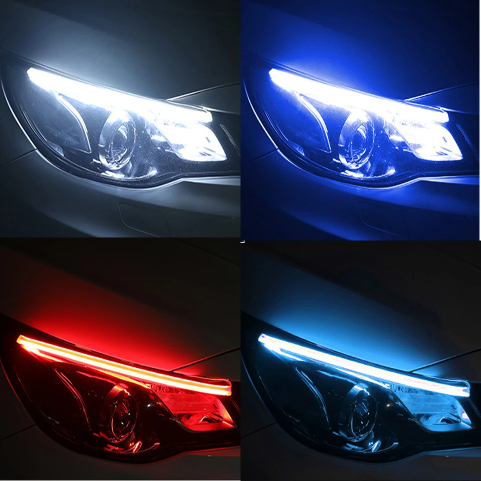 Новейшие автомобильные светодиодсветодиодный дневные ходовые огни DRL, 1 шт., автомобильные плавные указатели поворота, Направляющая лента, сборка фар, аксессуары для стайлинга автомобиля