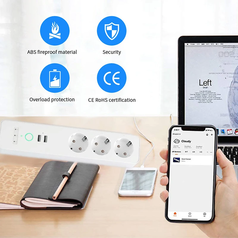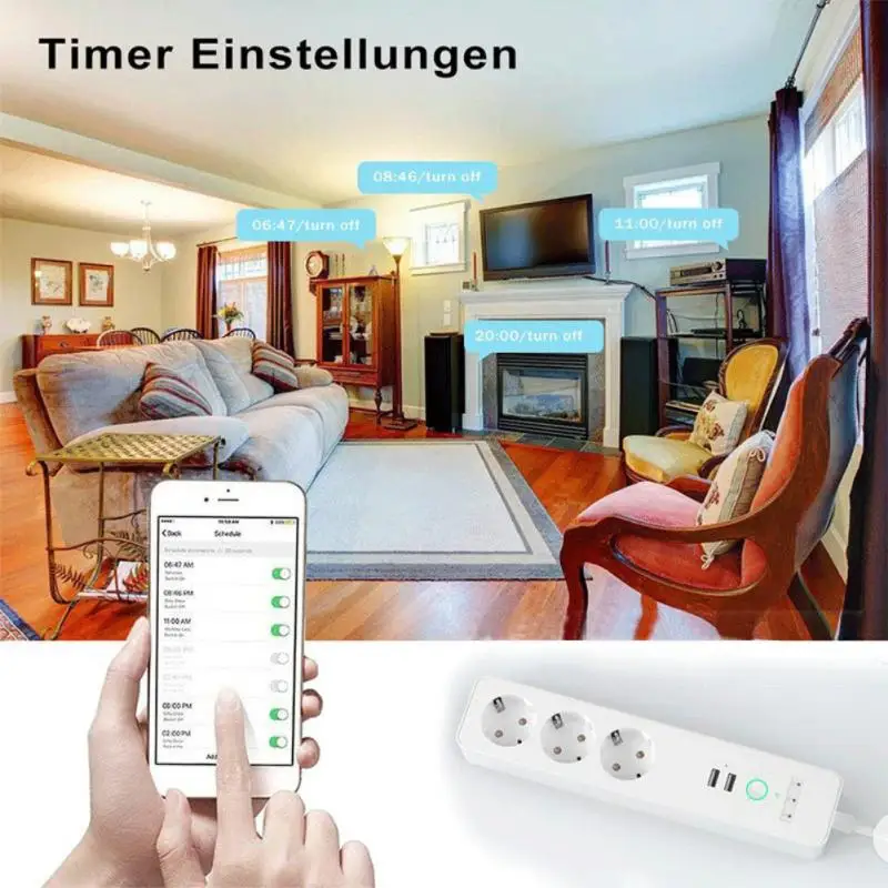 Умная полоса питания Wi-Fi Tuya, 3 розетки европейского стандарта, штепсельная вилка 16A, 3 usb-порта для зарядки, приложение синхронизации, голосовое управление, работа с Alexa Google Home