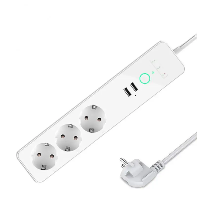 Умный удлинитель Tuya с Wi-Fi, 3 евророзетки, 2USB-порта для зарядки