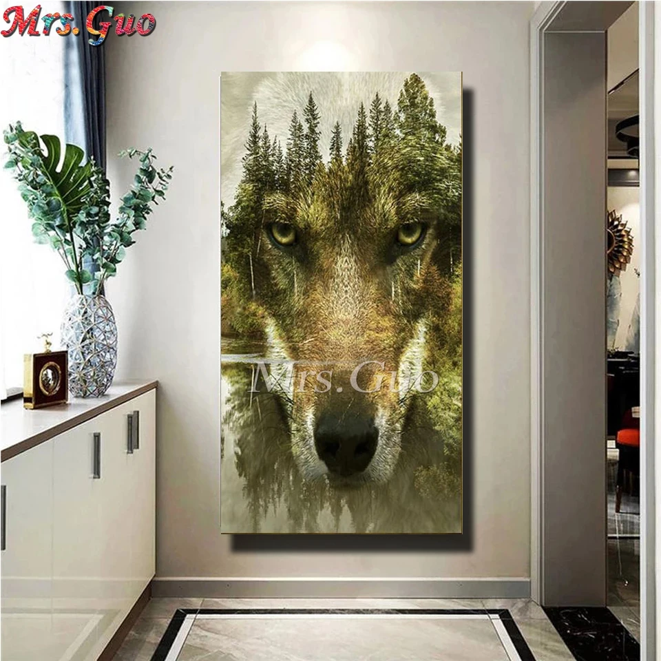 DIY Алмазная картина абстрактная Волчья стена искусство полная Алмазная Вышивка лесной пейзаж Вышивка крестиком Мозаика головоломка стразы,