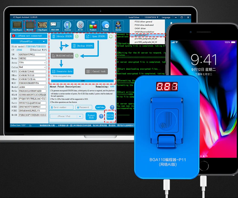 Флэш-программатор JC NAND Pro 1000S P7 P11 для iPadiPhone, чип жест...