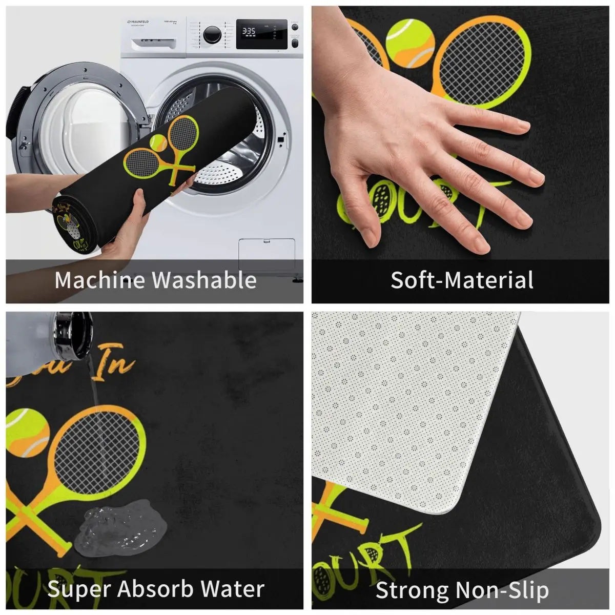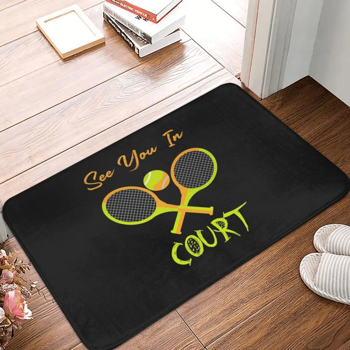 Напольный коврик для тенниса с надписью See You In Court, подарок для влюбленных, коврик, коврик, подкладка для ног, полиэстер, нескользящий, для коридора, кухни, спальни, балкона, туалета
