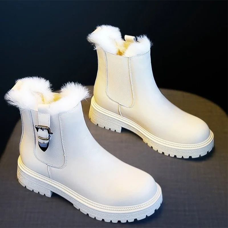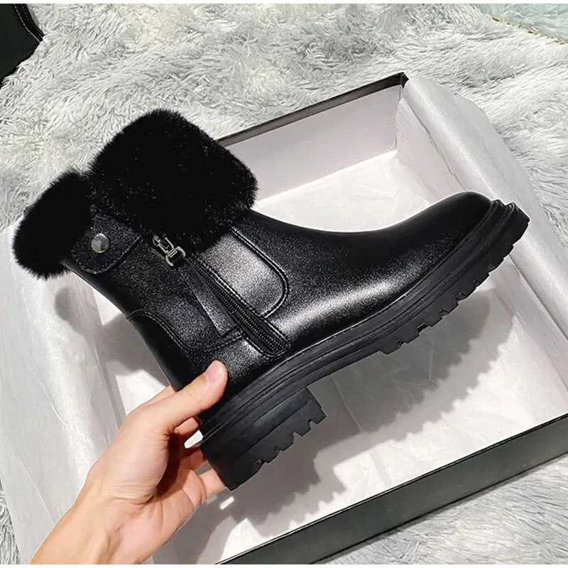 Женские ботинки челси из искусственного меха, зимние Бархатные Теплые дамские ботинки, Нескользящие женские ботильоны на квадратном каблуке с застежкой-молнией, женские ботинки