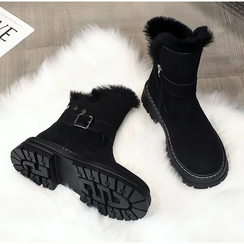 Женские ботинки «Челси» с искусственным мехом; Зимняя теплая женская обувь из бархата; Женские ботильоны на не скользящей молнии и не сужающемся книзу массивном каблуке; Женские ботинки; Botas