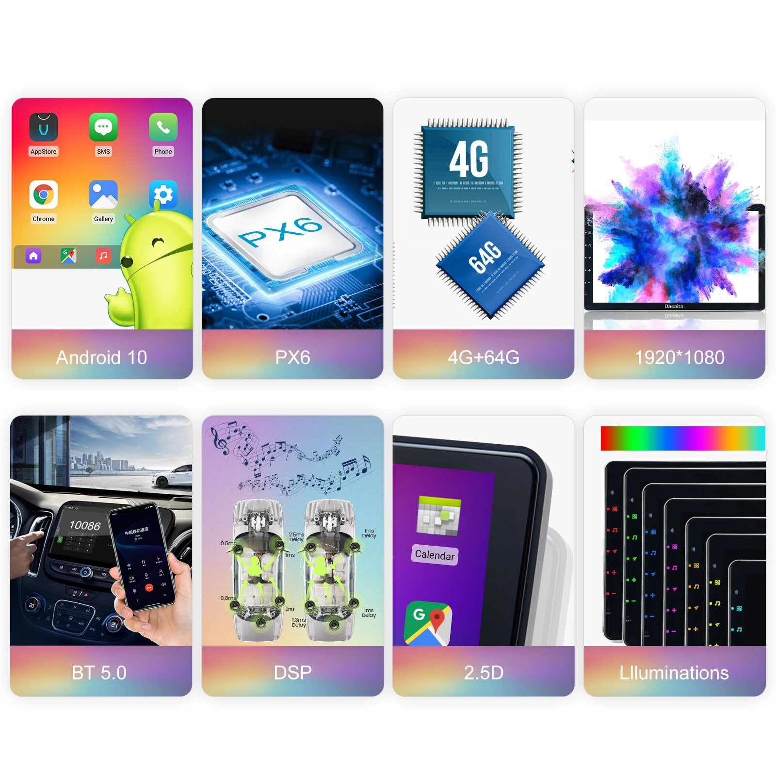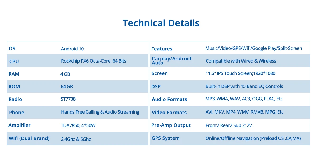 1.【Specifications】: android 10,0/PX6 шестигранный процессор/4 ГБ ОЗУ/64 Гб ПЗУ/экран IPS/разрешение 1920*1080/встроенный WiFi/Встроенный DSP/Интернет/4 аудиовыхода/2 sub Out / 3 USB порта2. 【Совместимость транспортного средства 】: подходит для транспортного средства с двойным разъемом din. В комплект входят только жгуты iso и жгуты для автомобиля nissan без заводской задней камеры и усилителя. Если вам нужен другой ремень, вам нужно связаться с продавцом с изображением вашей приборной панели.3. 【Carplay & Android Auto】 Наслаждайтесь любимым приложением-проводная carplay & android auto, это позволяет Вам легче, чем когда-либо, перемещаться, общаться и воспроизводить музыку в дороге.4. 【Internet】 WiFi может дать вам доступ к прослушиванию онлайн-музыки, просмотру видео и загрузке приложения. Он также имеет встроенный слот для sim-карты, вы можете получить доступ к Интернету через встроенный слот для интернет-карты 4G.5. 【Features】проводной Carplay & Android Авто/Управление рулевым колесом/bluetooth Hands Free вызов/gps-навигация/сплит-экран/Регулировка DSP/Интернет/Goggle Play Store/видео/радио