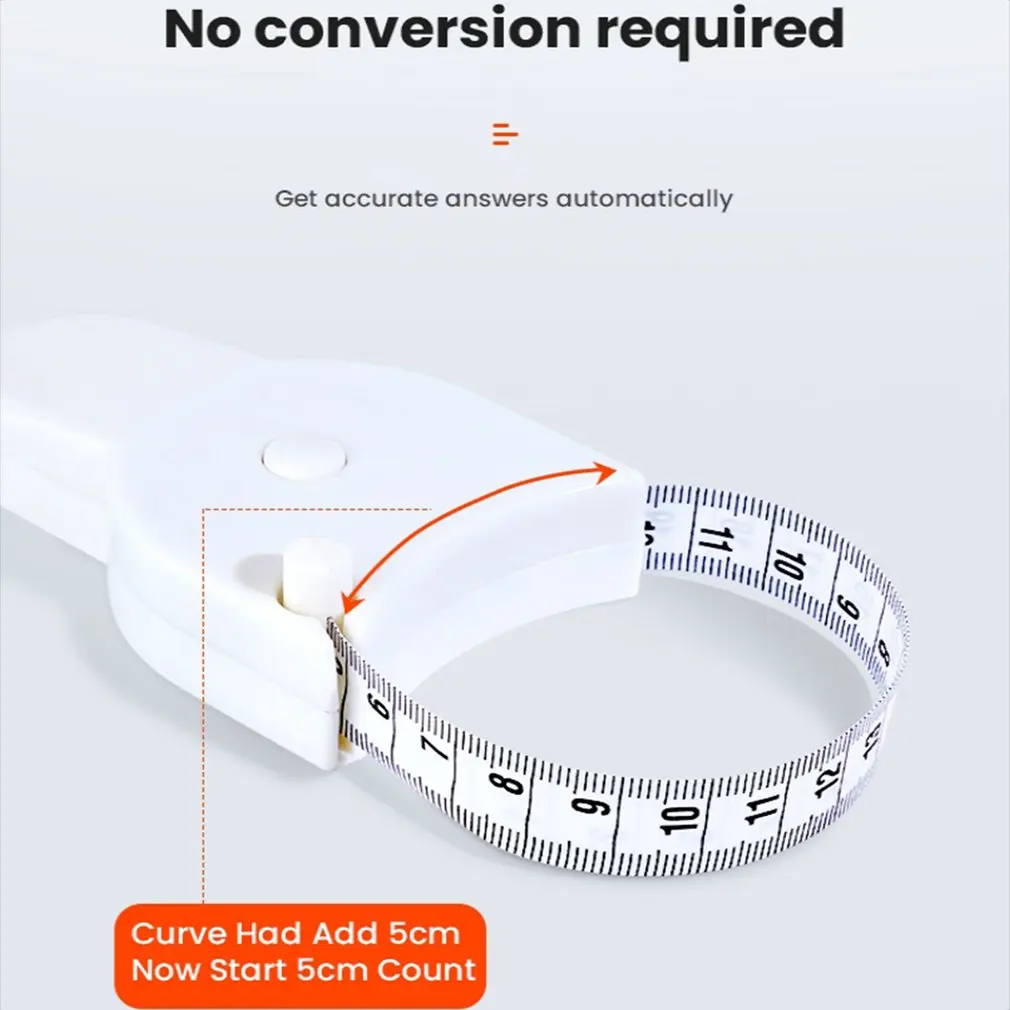 3. Простота в использовании: Эта измерительная лента для измерения тела выдвигается. Измерительная лента для тела имеет оттягивание кнопки и функцию блокировки штифта, что означает, что штифт фиксируется на месте, и вы можете отрегулировать ленту, чтобы получить измерения