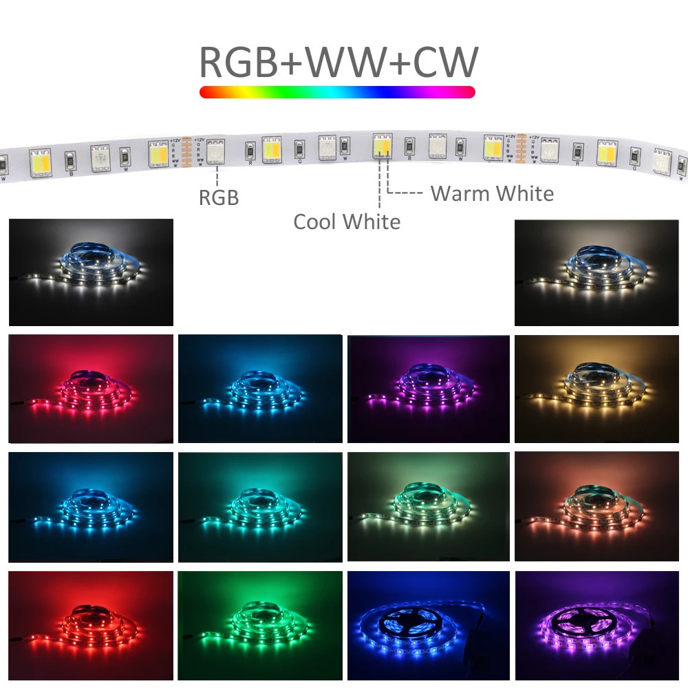 Светодиодный Тип: 5050 SMDКоличество СВЕТОДИОДНЫЙ: 60 светодиодный s/метрМощность: 7,2 Вт/мСветодиодный цвет: RGB + холодный белый (6000-6500K)+ теплый белый (2700-3000K)Рабочее напряжение: 12 В постоянного токаСтепень защиты: IP20 (не водонепроницаемый); IP65 (эпоксидная смола водонепроницаемый)Размер: 5000 мм * 12 мм * 2,5 мм (IP20 не водонепроницаемый) 5000 мм * 12 мм * 4 мм (IP65 Водонепроницаемый)Угол луча: 120 °Посылка включает в себя: 5 метров/рулонОсобенности:Сверхяркий 5050SMD светодиодный, высокая интенсивность и надежность.Непрерывная длина, упаковано с 5 метром в катушке, каждая катушка является продажным блоком.Срезаем каждые 6 светодиодов по разрезающим знакам в соответствии с практическими требованиями.Длительный срок службы 50000 + часовГибкая лента для изгибаПолностью гладкий и ровный светильник, решение неровной светящейся проблемыУльтра-яркий, но работает при низкой температуреСамоклеящаяся задняя сторона с 3 м двусторонней клейкой лентойСертификация: CE & RoHSНизкое энергопотребление