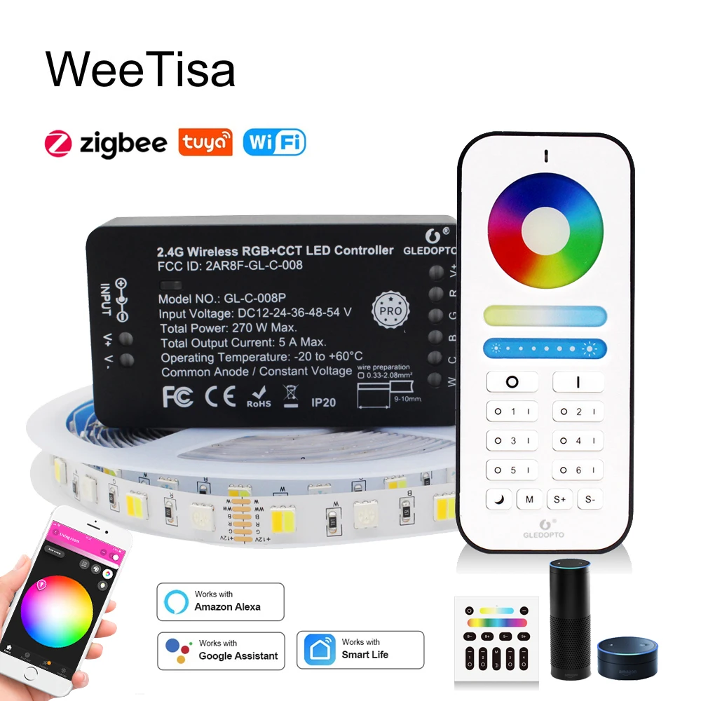 Светодиодная лента RGB CCT 12 В 5 м RGBCCT WIFI Smart Gledopto Zigbee Pro контроллер, водонепроницаемая SMD 5050 Светодиодная лента для украшения комнаты