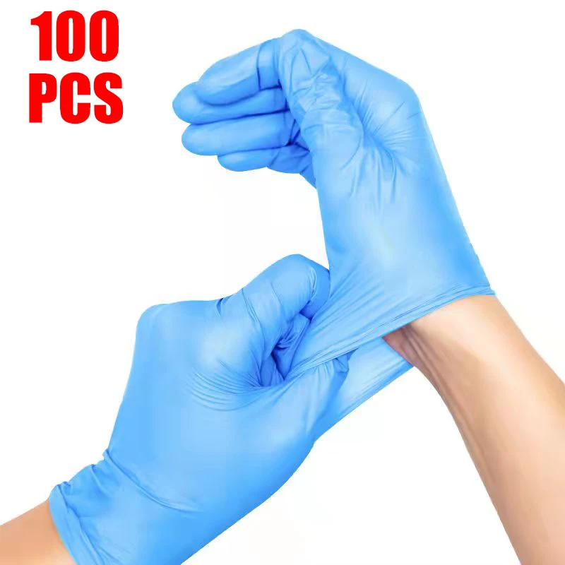 100 шт., одноразовые нитриловые перчатки, водонепроницаемые
