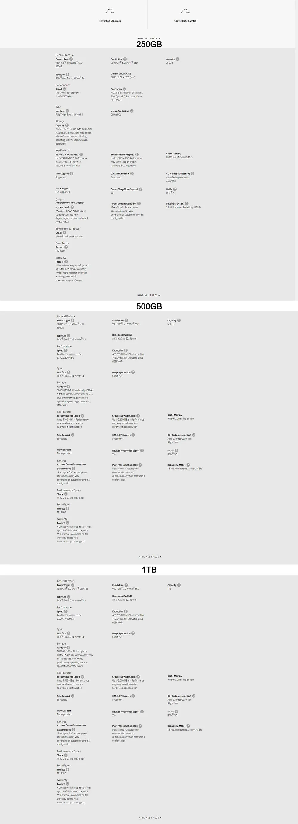 Внутренний жесткий диск SAMSUNG HDD 500 ГБ, жесткий диск 1 ТБ NVMe M.2, твердотельный накопитель M2 2280 TLC 250 Гб PCIe Gen 3,0x4,NVMe 1,4 для ПК
