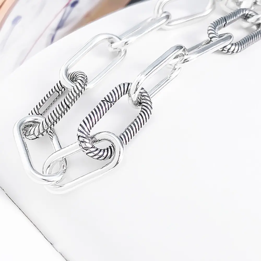 Ссылки очень тонкие, качество выглядит плохо. Единственное, что приемлемо, это подвеска, но не стоит платить почти 16 евро за этот браслет.