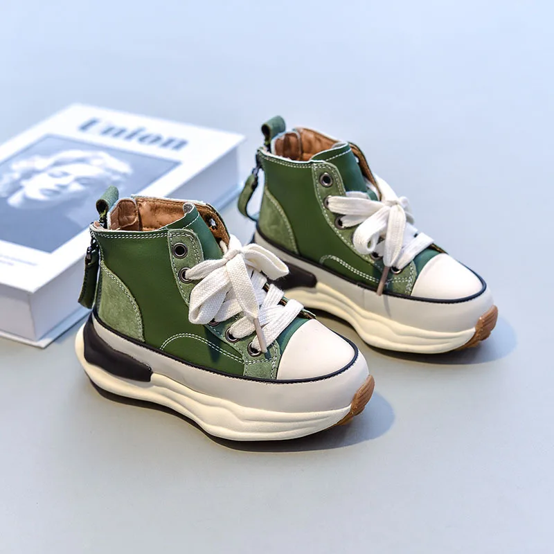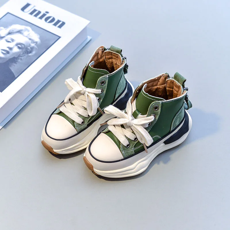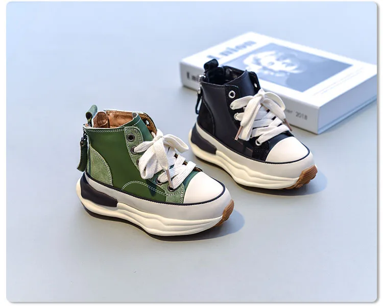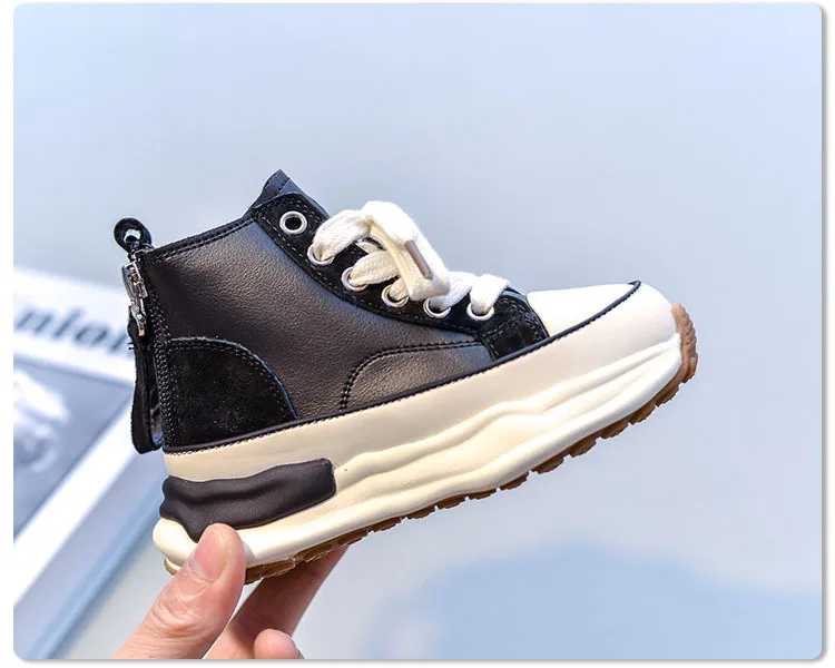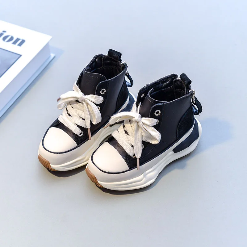 Зимние новые детские спортивные кроссовки для маленьких мальчиков теплая Брендовая обувь детские высокие повседневные кроссовки для девочек черные кроссовки на массивной подошве для тренировок