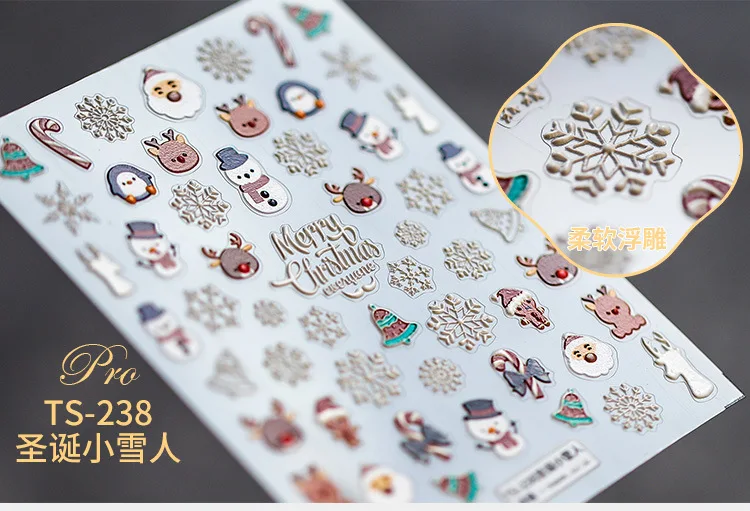 Новинка Рождественская наклейка для ногтей снежинка снеговик трехмерная матовая и тонкая рельефная 5D наклейка для дизайна ногтей