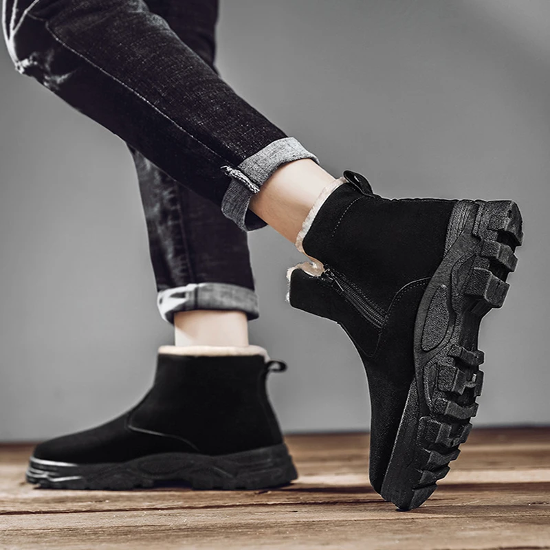 Мужские зимние ботинки, теплые и бархатные ботинки для снега, мужск...