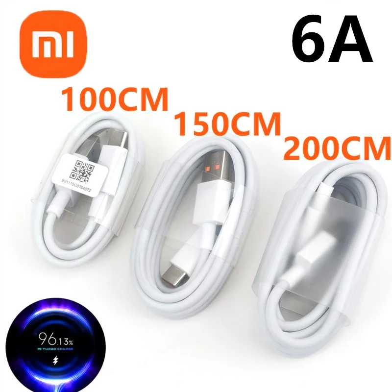 Оригинальный 6A Xiaomi Turbo зарядный кабель 1 м1,5 м2 м Быстрая зарядка Mi 11 9 Poco M3 X3 NFC F2 Redmi Note 10 K40 K30 Usb TipoC