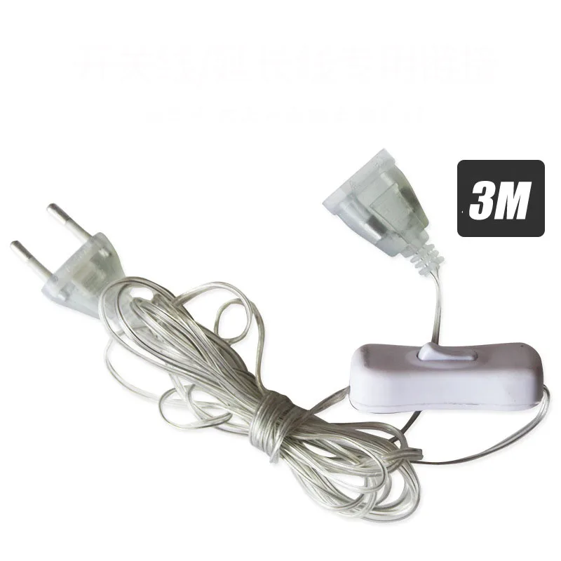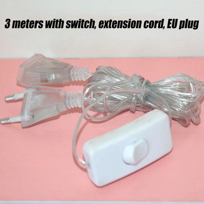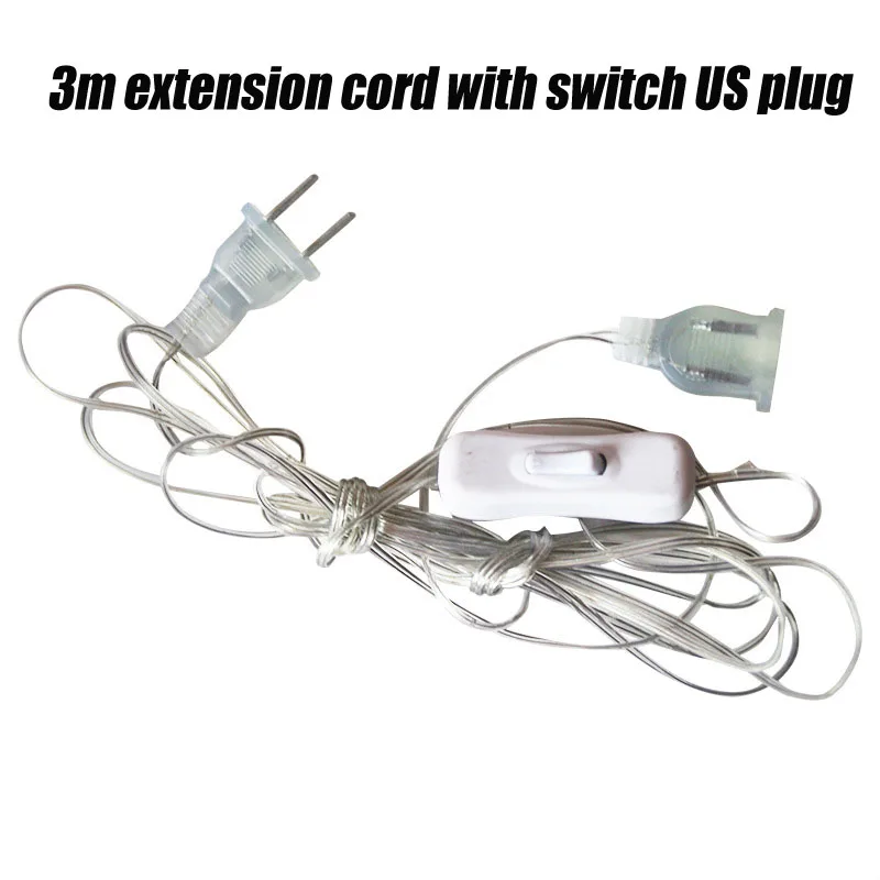 Удлинительный кабель-гирлянда, 3 м, вилка для ЕС, 220 В, вилка для США, 110 В, USB с переключателем для внутреннего и наружного освесветильник, Рождественская сказочная гирлянда