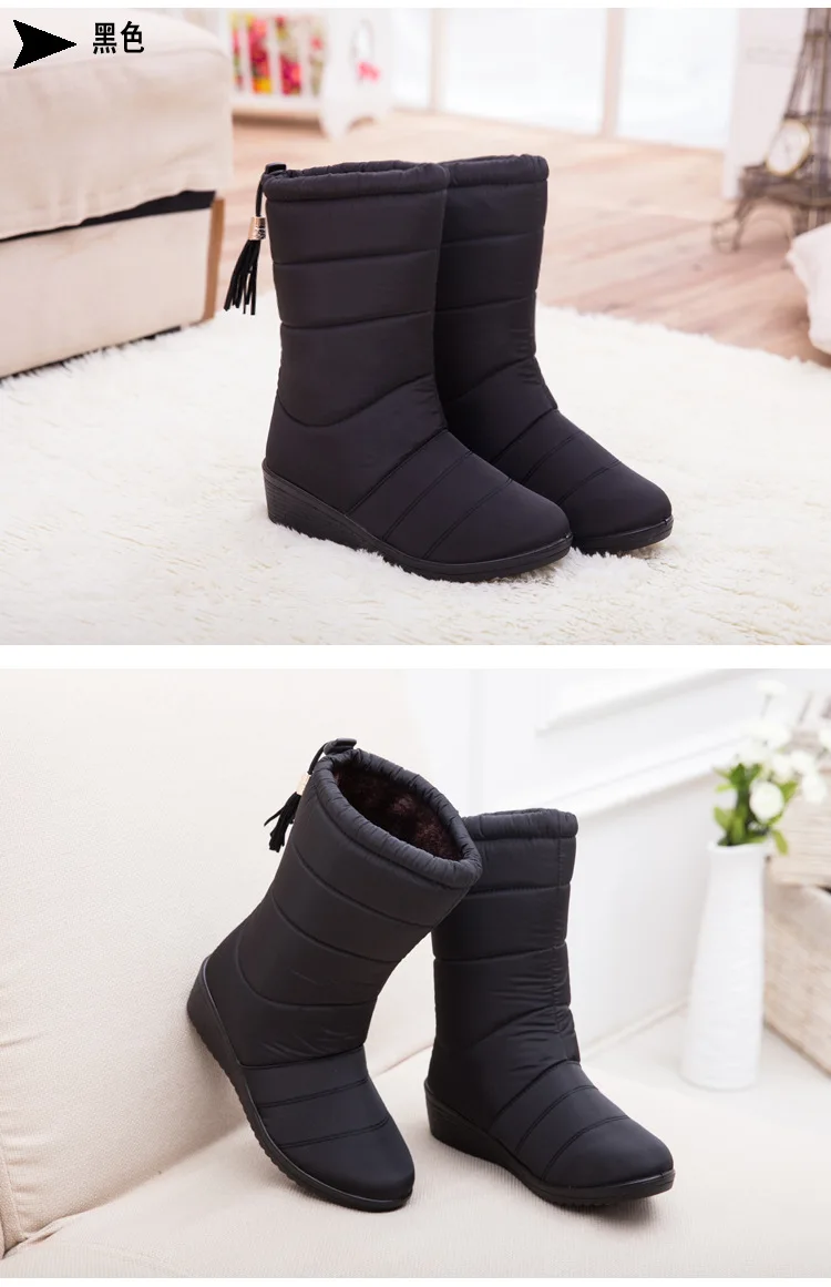 Женские зимние сапоги, теплые короткие плюшевые женские сапоги до середины икры, водонепроницаемая женская зимняя обувь, женские сапоги без застежек, зимняя обувь