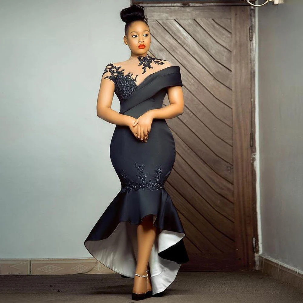 Женское вечернее платье с юбкой-годе, черное платье из тафты с высокой горловиной, облегающее официальное платье, женское платье