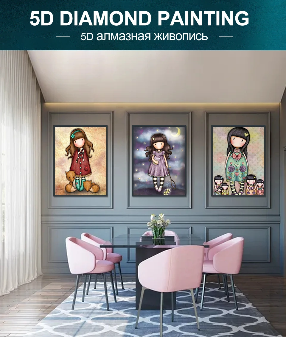 5D сделай сам, алмазная живопись, портрет мультяшной девушки, полноразмерная Алмазная вышивка, мозаика, вышивка крестиком, набор для украшения
