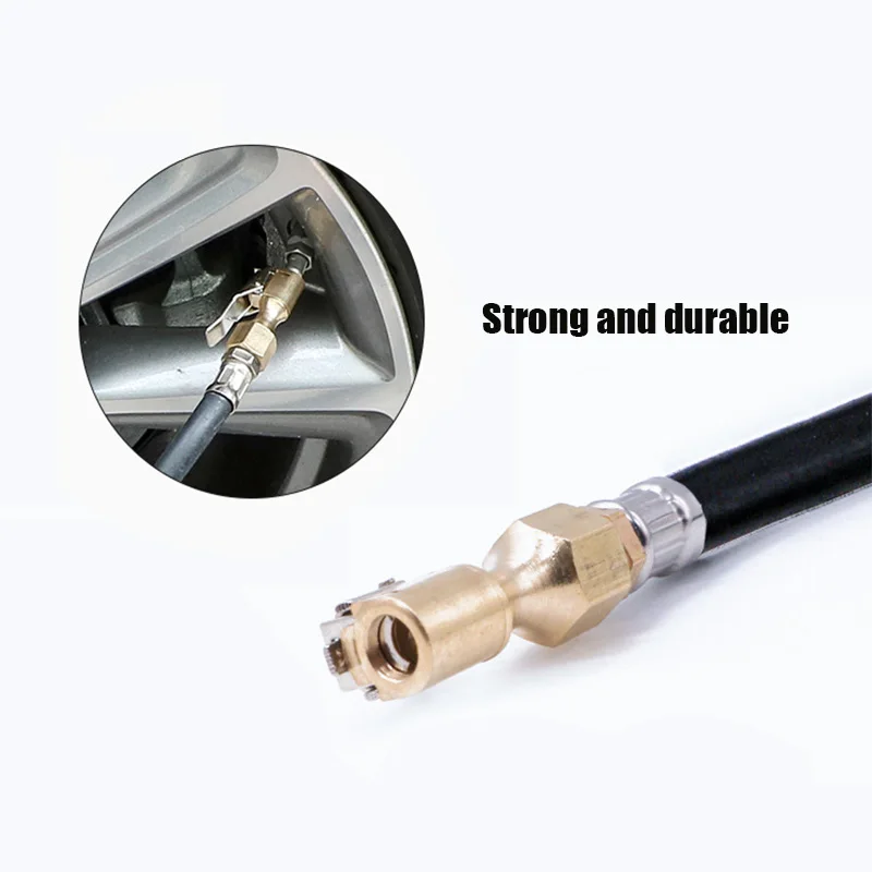 Прямой замок на подлинном латунном воздушном патроне предлагает большое уплотнение на шиномонтажном клапане снаружи автомобильных шин и освобождает ваши руки, чтобы управлять шиномонтажным насосом. 1/4 NPT быстроразъемные мужские фитинги интегрированы в один блок. Удлинитель клапана на 90 градусов позволяет подключать к шиномонтажному клапану внутреннюю часть автомобильных шин.
