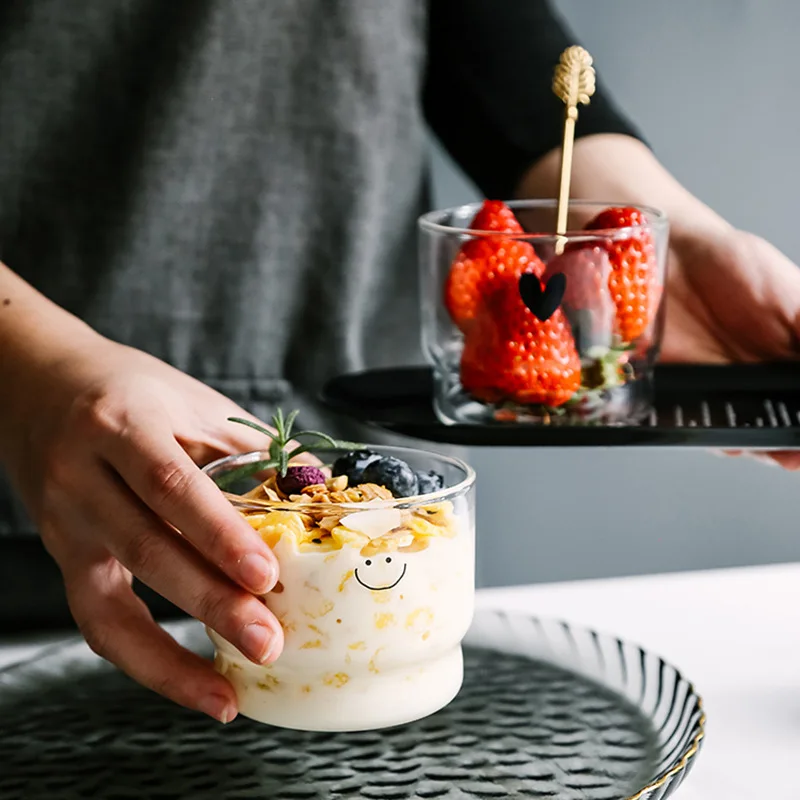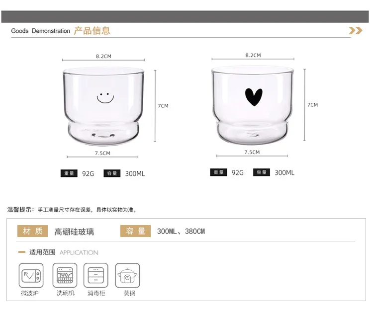 Стеклянная чашка 300 мл, термостойкая чашка с принтом милого сердца и улыбкой, чашки для молока, десерта, кофе, йогурта