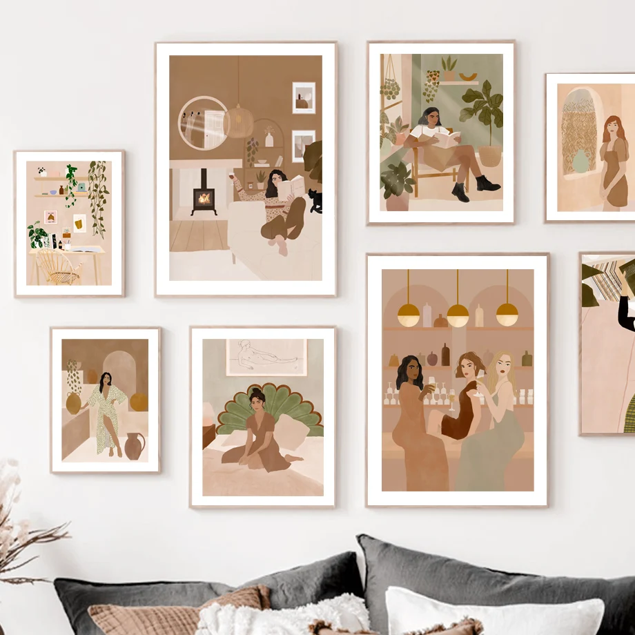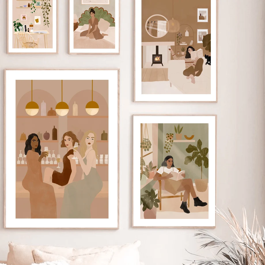 Настенные картины в скандинавском стиле с изображением девушек и же...