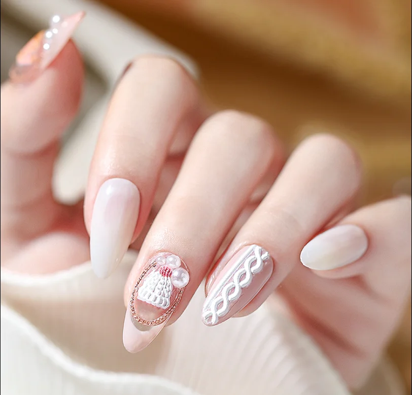 Новинка, мягкая рельефная наклейка для ногтей 5D, дизайнерский Рождественский свитер, белая фотография, Осенний декор, аксессуары для ногтей своими руками