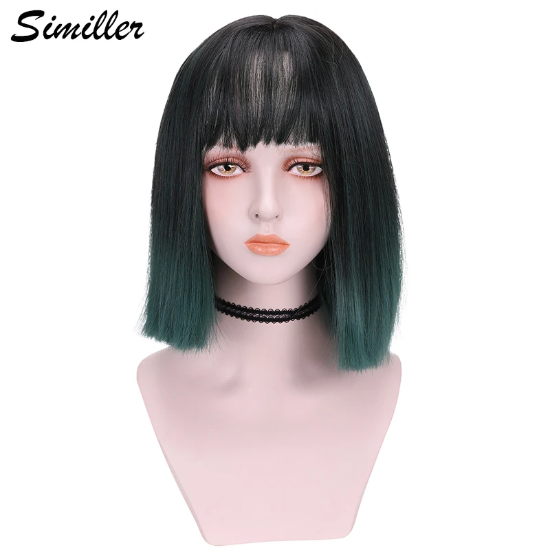 Similler короткие синтетические волосы парики для женщин термостойкие черные T зеленые фиолетовые Омбре боб парик для ежедневного использования