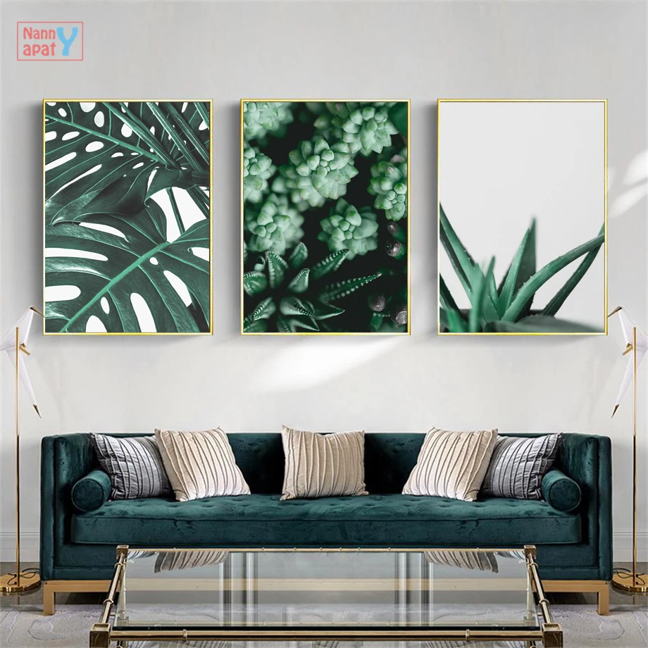 Настенная картина с изображением листьев суккулентов, абстрактные л...