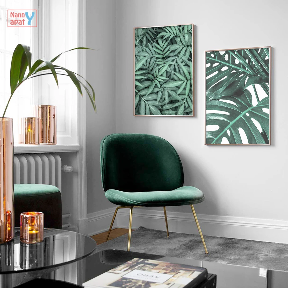 Monstera, банан, пальма, лист, холст, картина, зеленые растения, на...