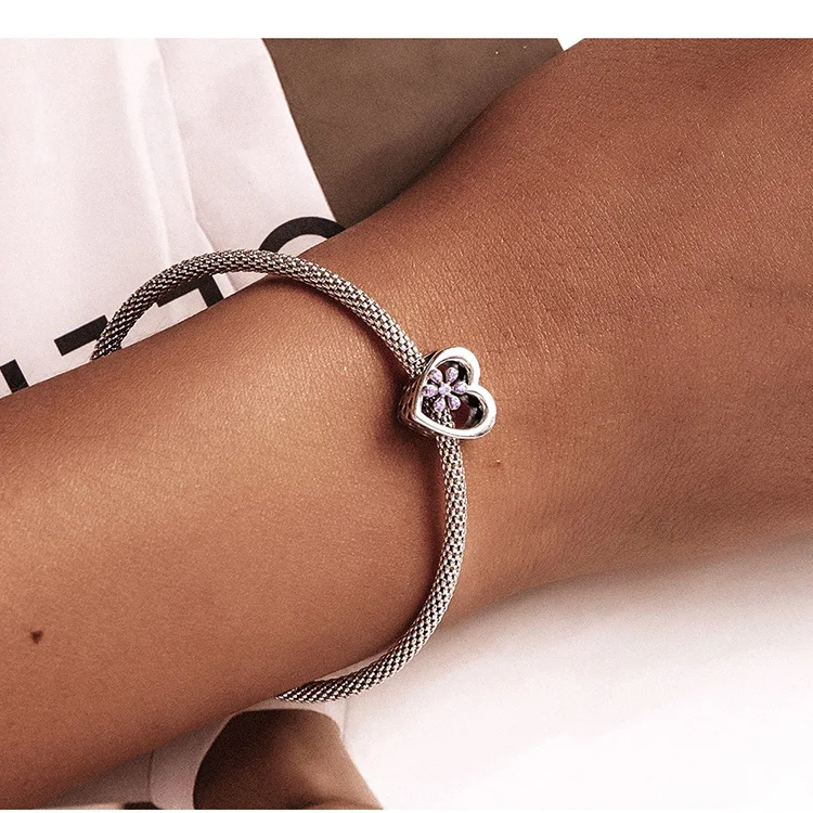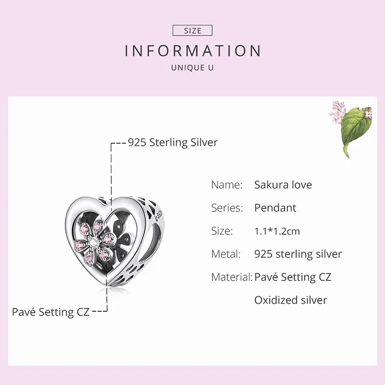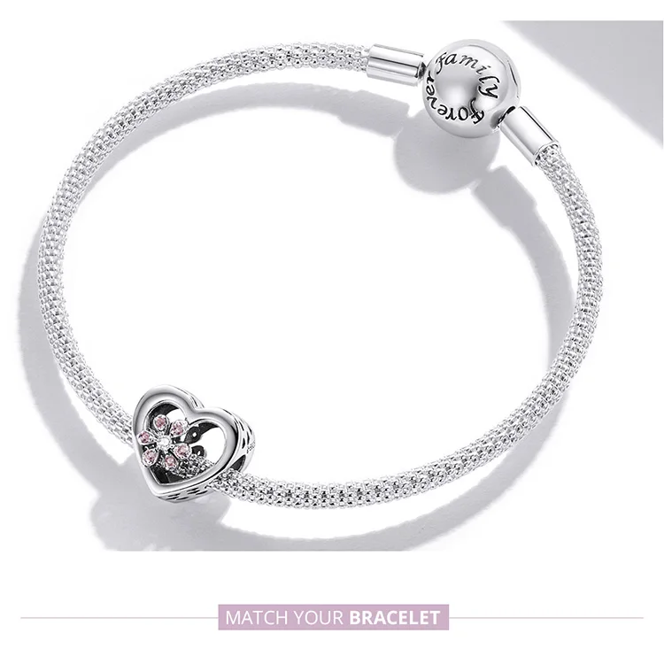 Bamoer, Стерлинговое Серебро 925 пробы, Сакура, любовь, инкрустиров...