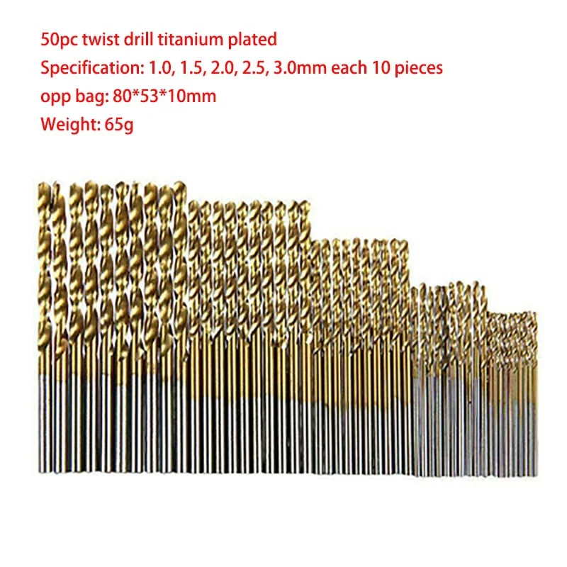 Особенности:1. Конструкция с прямым хвостовиком больше подходит для многих электрических сверл и сверлильных машин (не входит в комплект).2. Острые и скрученные флейты облегчат бурение.3. Подходит для дерева, алюминия, пластика или других материалов.4. Идеально подходит для DIY, семейного и общего строительства/инженерного использования. Характеристики:1. Дизайн: прямой хвостовик.2. Материал: титановое покрытие HSS4241.3. Обработка поверхности: белая дрель (оригинальный цвет), титановое покрытие.4. Диаметр и общая длина:1 мм: 1 мм * 33,5 мм1,5 мм: 1,5 мм * 40 мм2 мм: 2 мм * 48 мм2,5 мм: 2,5 мм * 57 мм3 мм: 3 мм * 60 мм Примечания:1. Из-за различных настроек монитора и светильник эффект, фактический цвет элемента может быть s светильник ly отличается от цвета, представленного на снимках. Спасибо!2. Возможны отклонения в 1-3 мм вследствие измерений вручную. Упаковка:50 шт твист кирпич(Коробка не содержит)