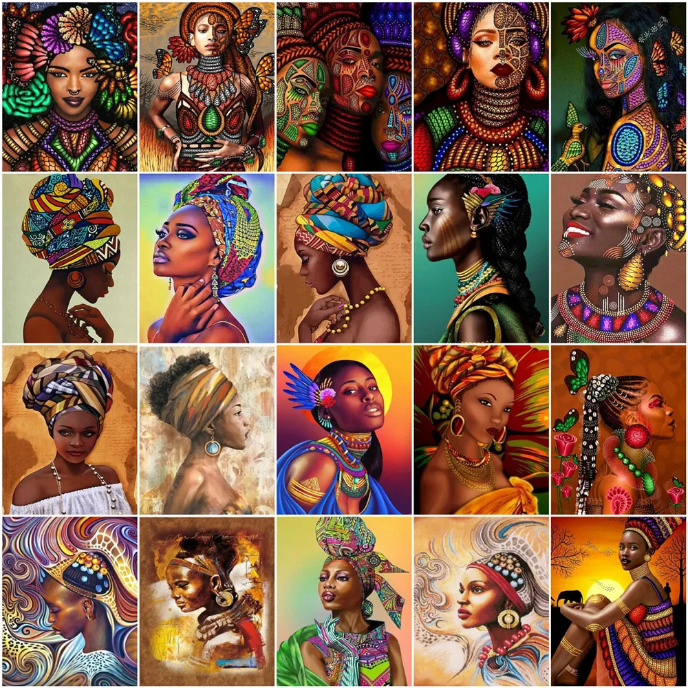 HUACAN картина по номеру Африканский Женский комплект DIY рамка Современный рисунок на холсте Ручная роспись искусство подарок картина по номеру портрет